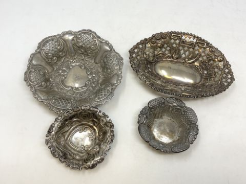 Four antique silver repousse dishes