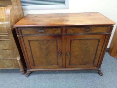 A nineteenth century double door sideboard fitted with two drawers on paw feet