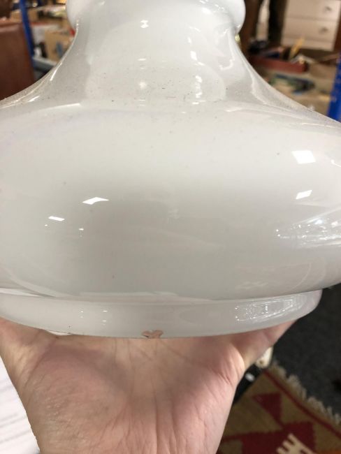 A box of assorted antique and later oil lamp shades