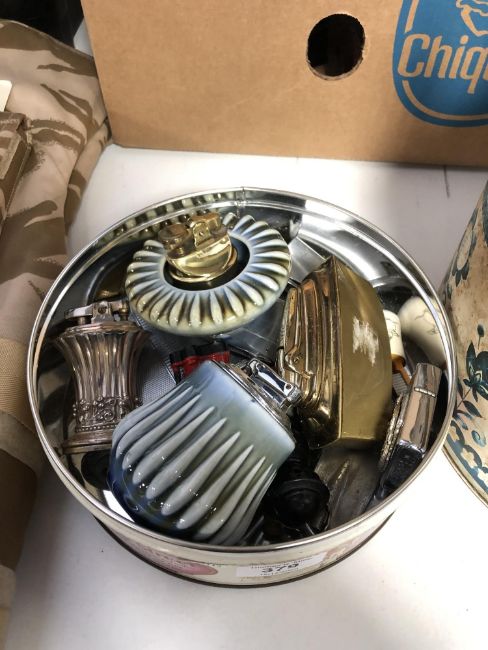 A tin of assorted table and pocket lighters to include Zippo, Calibri etc