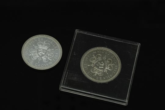 The Pobjoy Mint - 1977 sterling silver commemorative crown, together with a further Isle of Man Silver jubilee crown. (2)