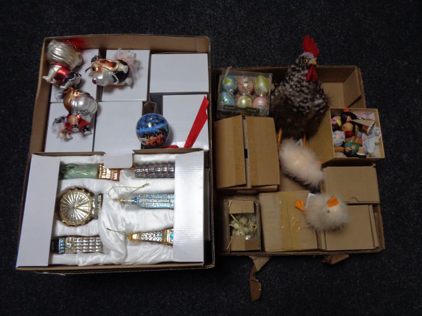 Two boxes of Christmas and Easter decorations
