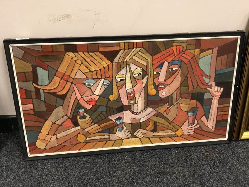 Continental school, abstract figures, oil on board, indistinctly signed verso