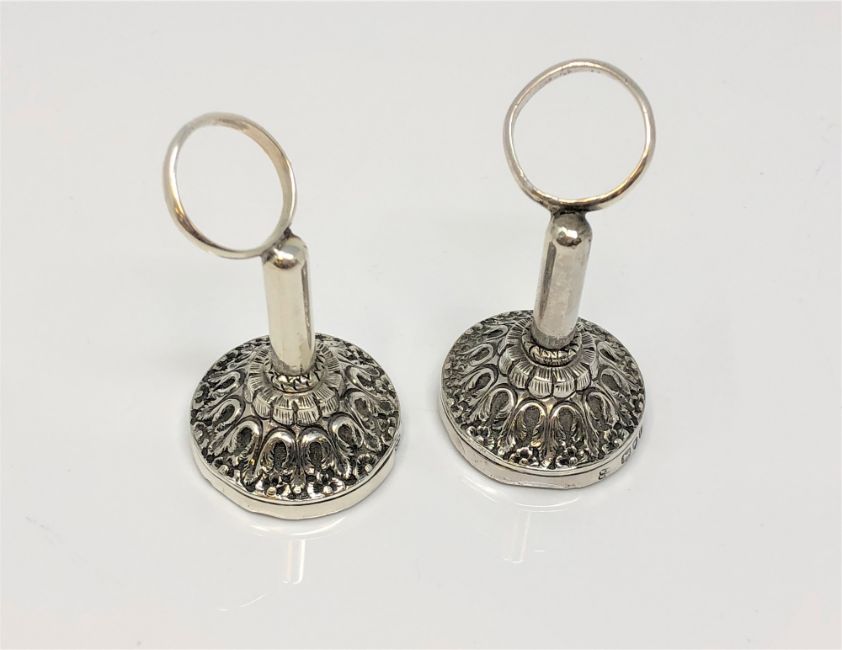 A pair of ornate silver napkin holders, London 1894