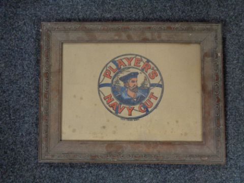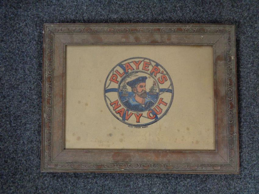 An Edwardian oak framed Player's Navy Cut advertisement on card