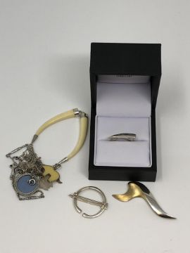 Silver jewellery including a boxed Sif Jakobs ring, brooches etc