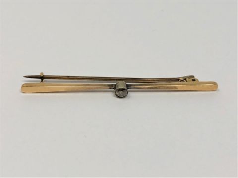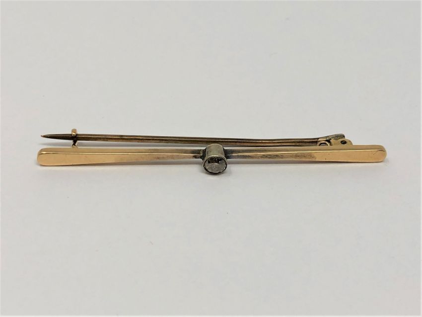 A 15ct gold bar brooch set with a diamond, approximately 0.2ct, 3.65g.