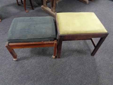 An antique mahogany dressing table stool together with one other