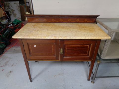 A late Victorian inlaid mahogany marble topped wash stand