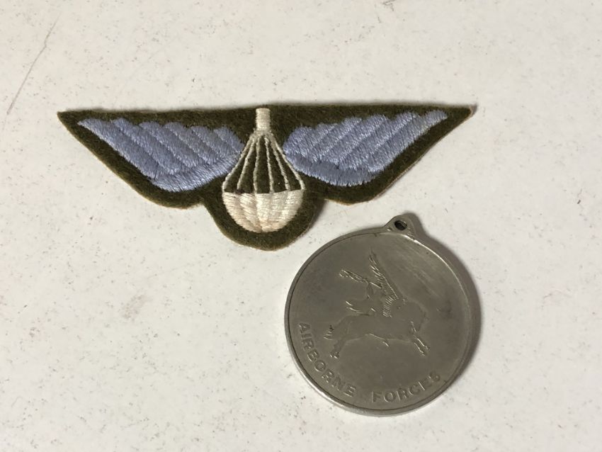 A Parachute regiment cloth badge and medal