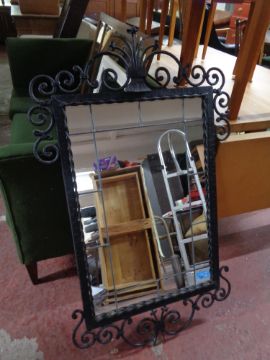 An ornate metal framed mirror