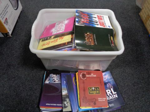 A box of theatre programmes from around the UK