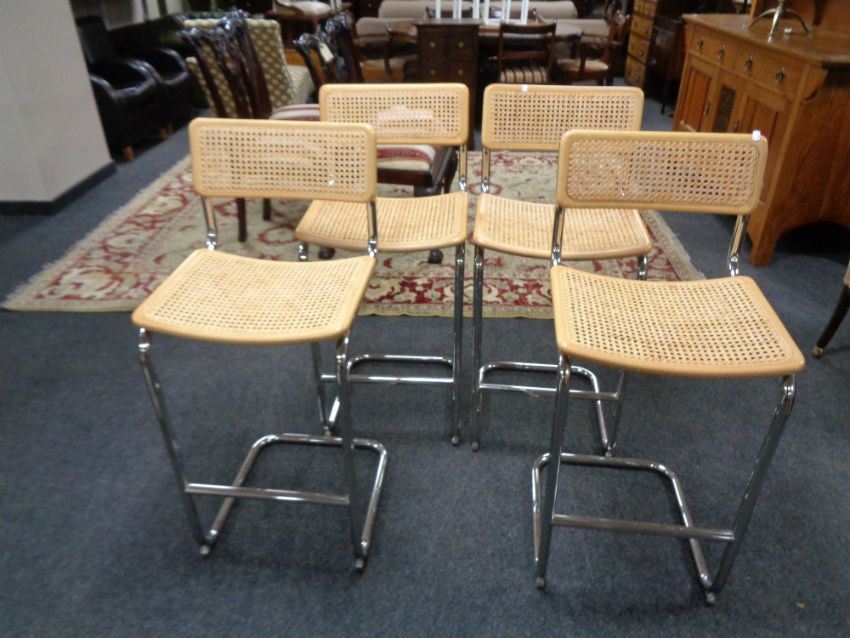 A set of four contemporary bergere seated breakfast bar stools