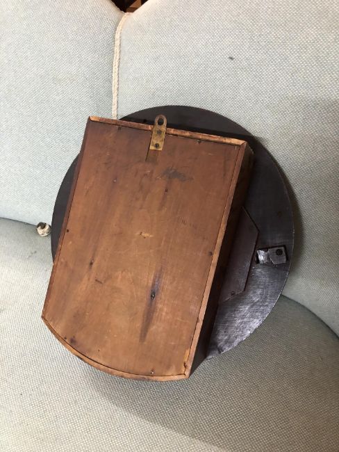 12" dial. Later twin-barrel movement with gong strike. There is a key, pendulum and a winder within the case. This has not been tested. See images.