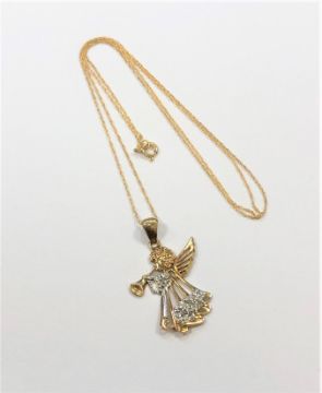 A yellow two-tone gold pedant modelled as an angel on chain