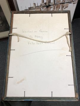 Some foxing visible in the sky. Minor surface dirt under the glass. Frame slightly distressed. Overall good condition.
