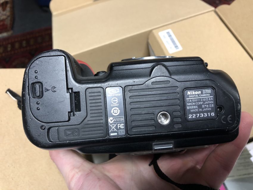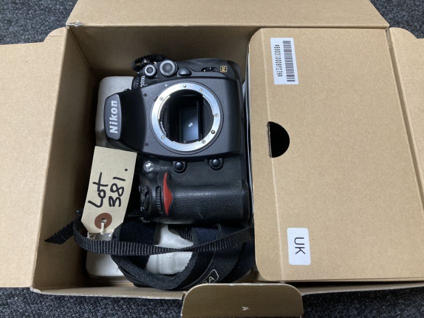 A Nikon D700 digital camera, body only, no lens cap, with two straps, with two cables only, boxed.