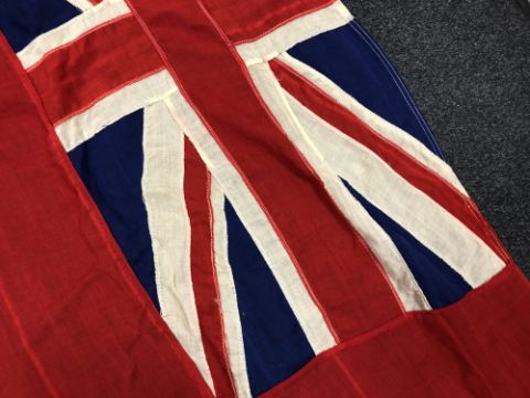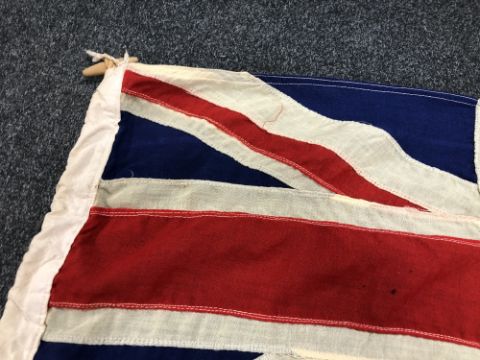 This measures 223cm by 94cm. Minor fraying to the threads and a little stained but fundamentally good condition.