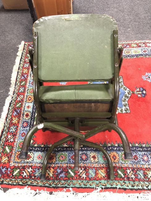 A mid century tubular metal framed dining chair upholstered in green vinyl