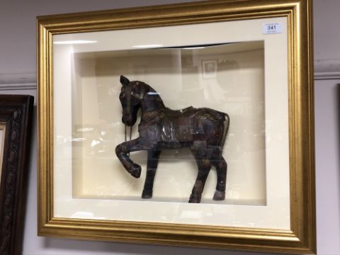 Contemporary South American School : Prancing Horse, sculpture, in glazed and framed box, overall dimensions 51 cm x 62 cm x 13 cm.