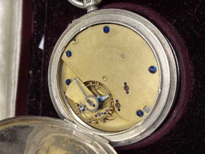 A silver pocket watch presented by the trustees of the Carnegie hero fund to Arthur Cannon Rawcliffe for heroism in saving life 8th August 1911