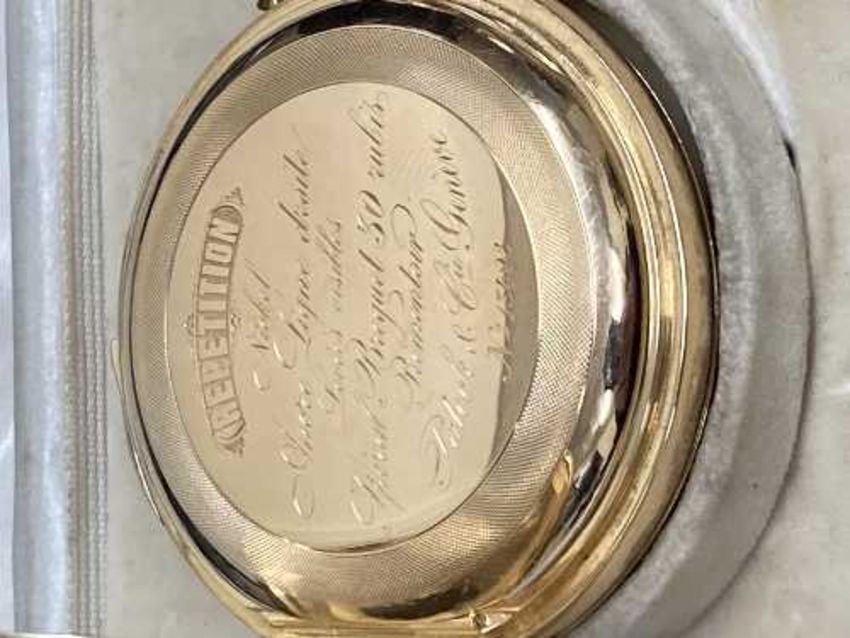 115g gross. This is currently ticking. There are two very feint time aged hair lines in the dial near the centre.