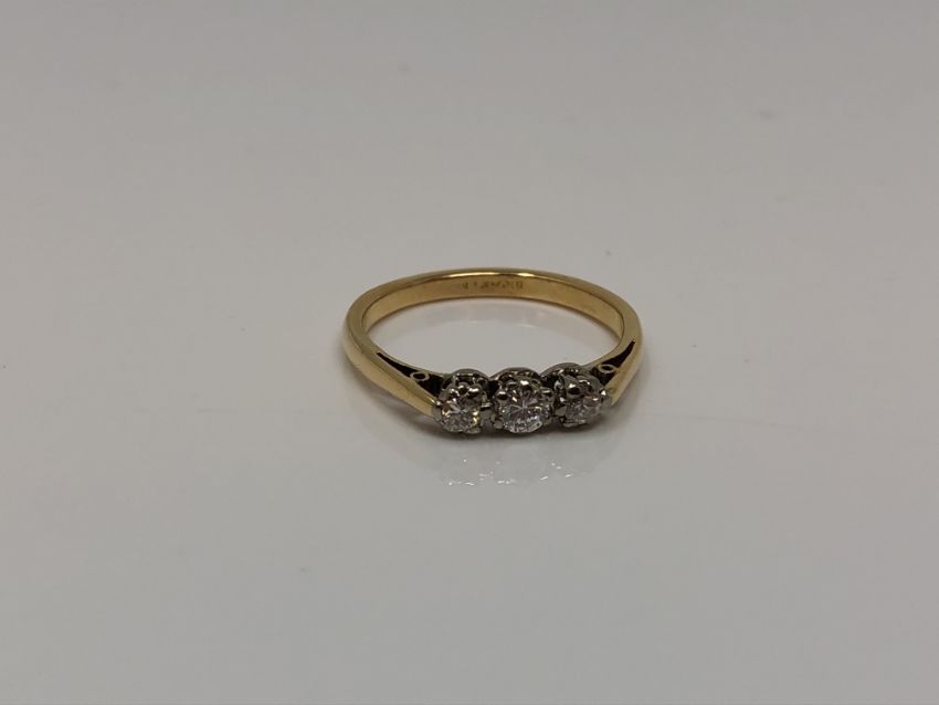 An 18ct gold three stone diamond ring, size L