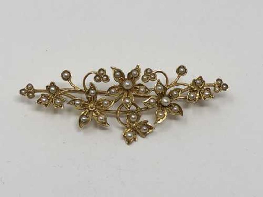 A good quality antique 15ct gold and pearl brooch