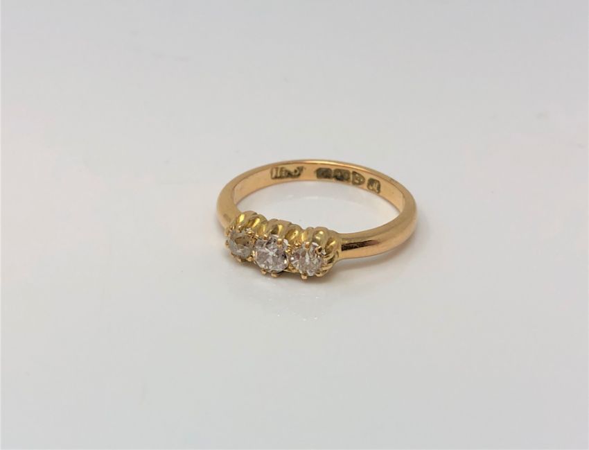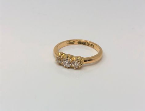 An antique 18ct gold three stone diamond ring, approx. 0.4 carat, size I