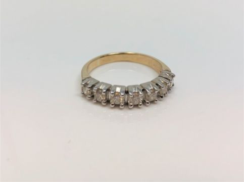 An 18ct white gold seven stone diamond half eternity ring, approximately 0.7ct, size P.