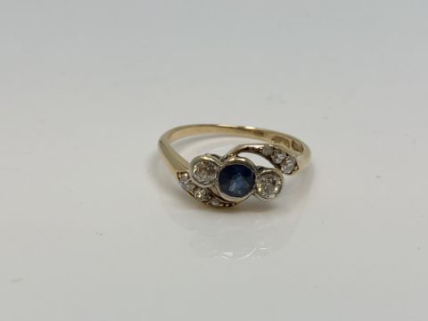 An antique 18ct gold sapphire and diamond ring, 2g.