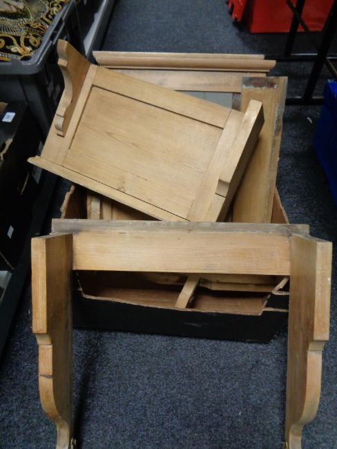 A box of a quantity of pine mirrors and stands