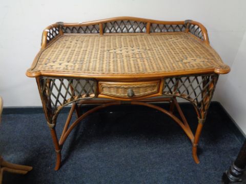 A cane side table fitted with a drawer 85 cm x 103 cm x 59.5 cm.