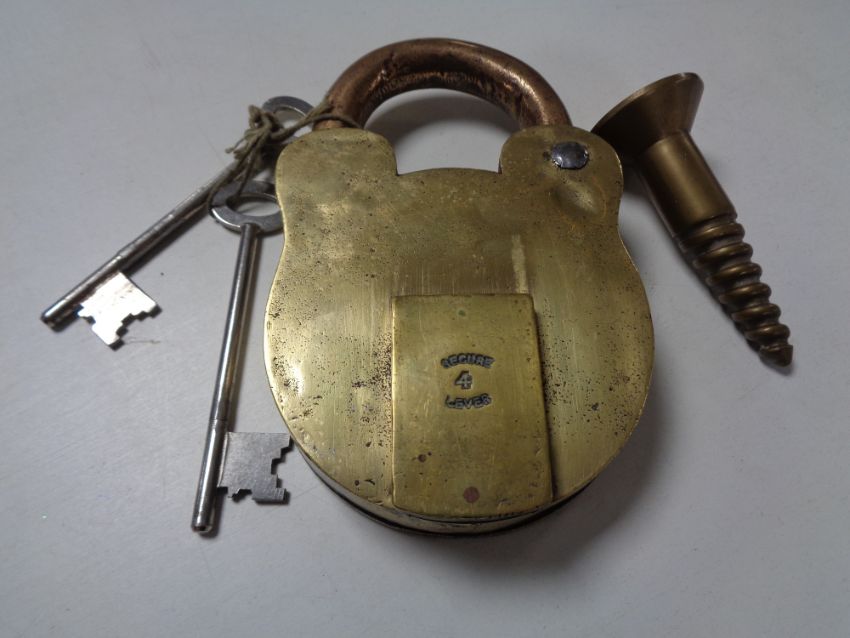 This padlock measures 16cm long by 10cm wide by 3cm deep. There are two keys which both work.