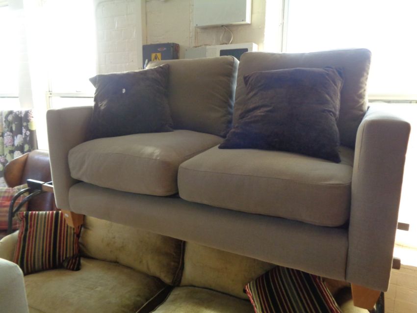 A contemporary two seater settee with scatter cushions