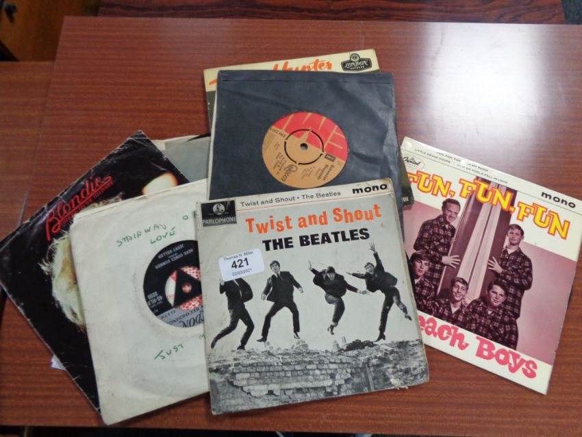 A quantity of lps and singles - Beatles, Beach Boys, Queen etc