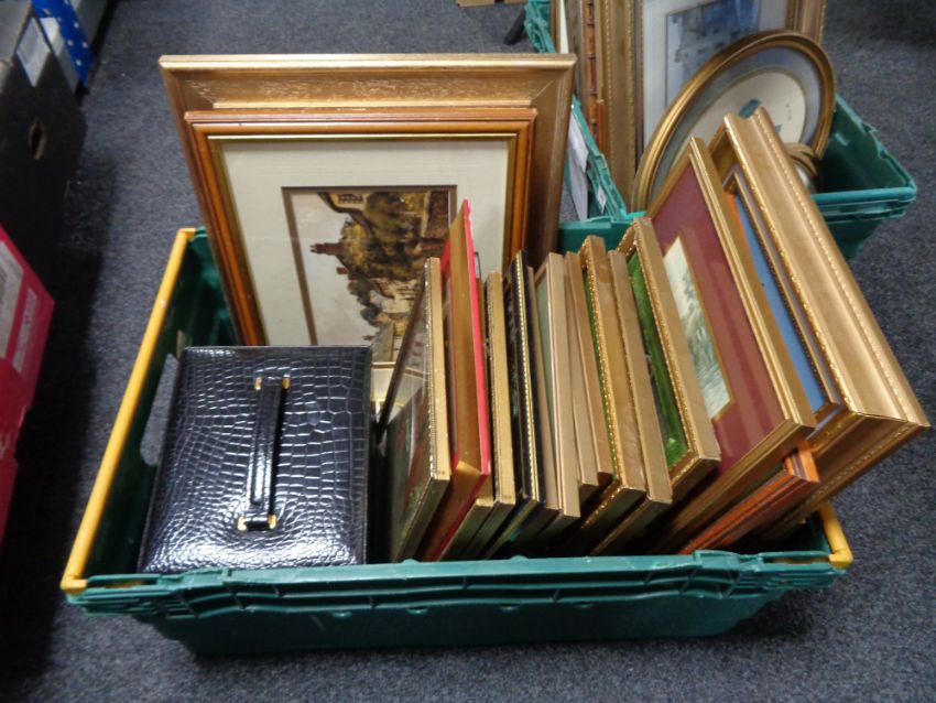 A quantity of gilt framed prints, oil on canvas etc
