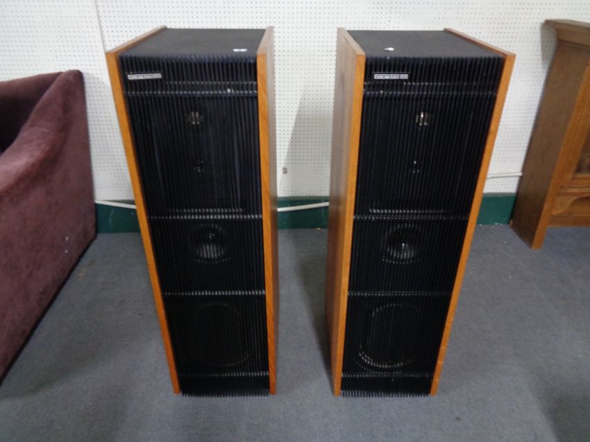 A pair of rare Cambridge Audio R50 series floor-standing teak-cased speakers, with connectors. (2)