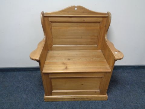 A pine storage seat