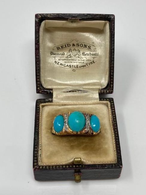 The turquoise stones look in good condition with minor abrasions. 6.9g