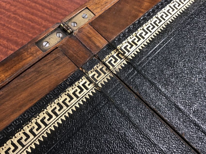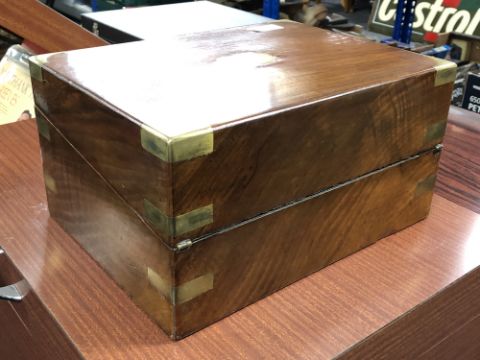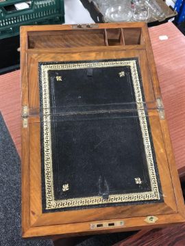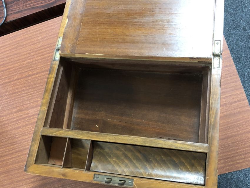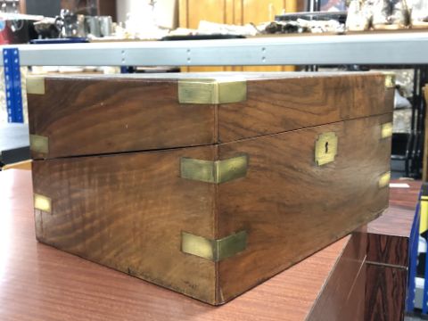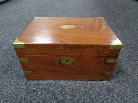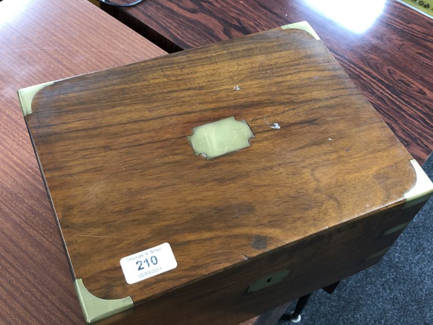 A 19th century walnut brass bound writing box