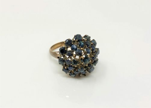 A 14ct gold sapphire cluster ring (one stone deficient), size M