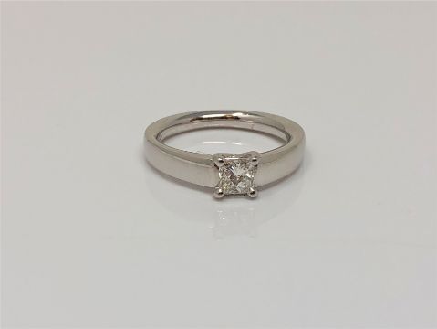 An 18ct white gold princess cut solitaire diamond ring, approximately 0.5 carat, size M