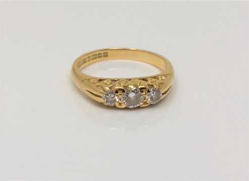 An 18ct gold three stone diamond ring, size J
