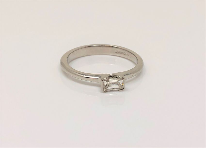A platinum emerald cut solitaire diamond ring, approx. 0.30 carat, size O
