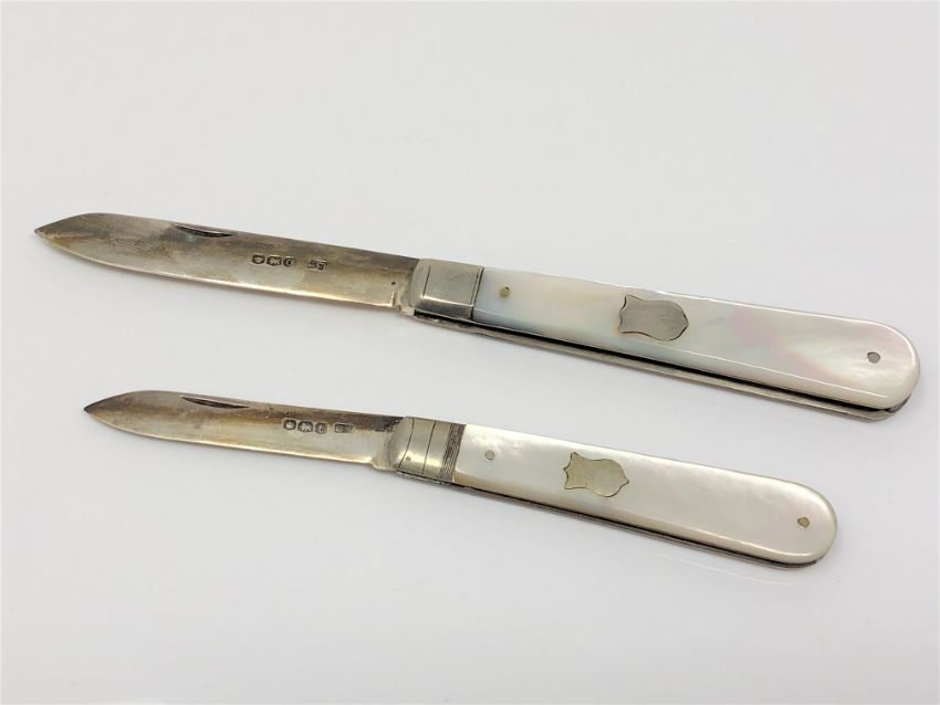 Two silver and mother of pearl fruit knives; Sheffield 1931 and 1936 (2)