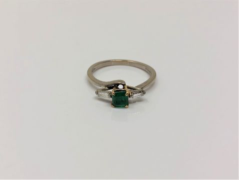 An 18ct gold emerald and diamond ring, size P