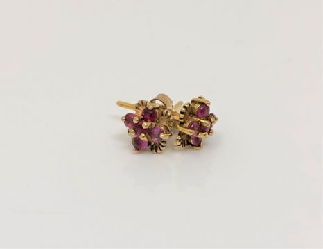 A pair of 9ct gold pink topaz cluster earrings.