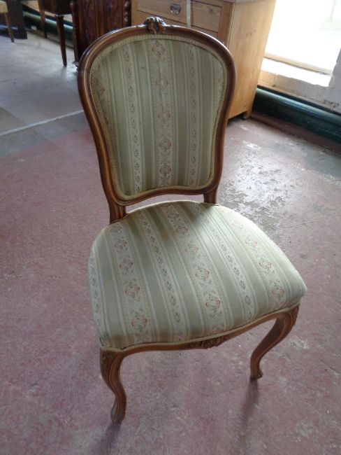 A beech framed French dressing table chair upholstered in a striped fabric