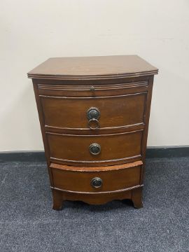 A Victorian style three drawer bedside chest with slide